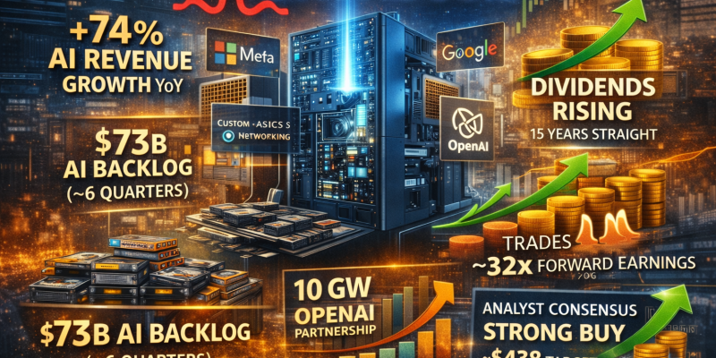 Behind that performance, AI-related revenue is ramping faster than many expected, with growth that appears close to doubling, supported by a $73 billion backlog of custom chip orders slated for delivery over the next 18 months.