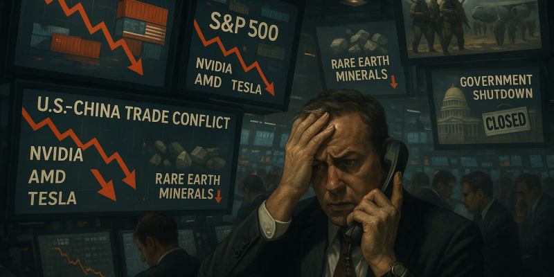 US stock markets fell sharply on Friday after President Donald Trump threatened a “massive increase of tariffs on Chinese products,” accusing China of “becoming very hostile” with its restrictions on rare earth metals.